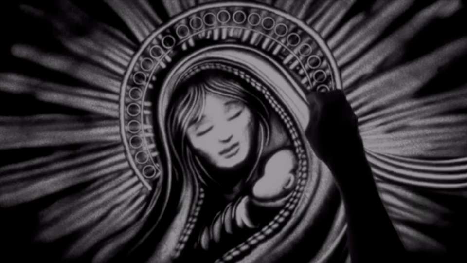 Het prachtige lied 'Mary, did you know' in zandtekeningen uitgebeeld. Geniet van deze bijzondere compositie van de zandtekenaar!